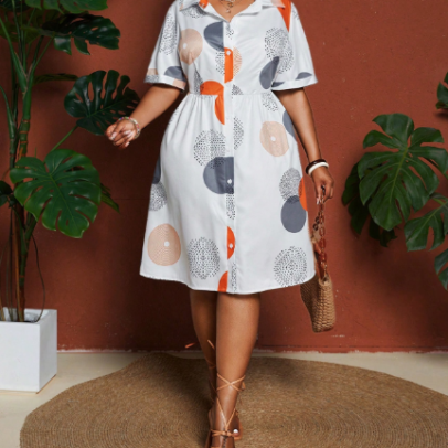 Chic Printed A-Line Round Neck Long Sleeve Dress