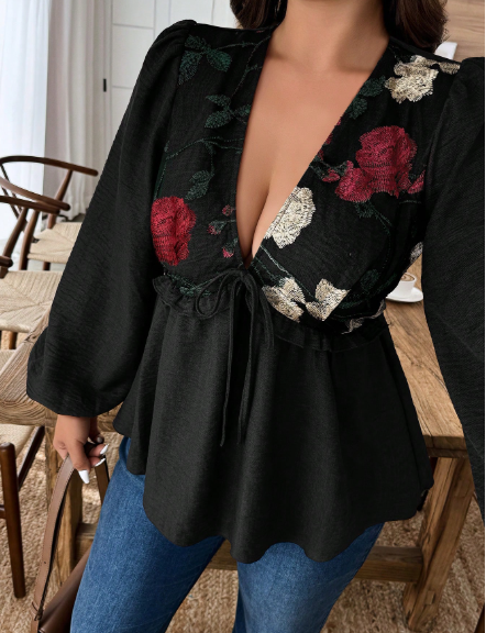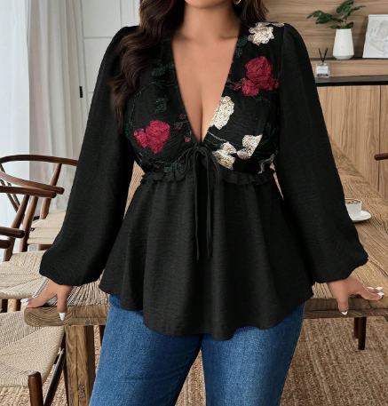 ✨ STYLE NOTE — Textured Embroidered V-Neck A-Line Blouse ✨