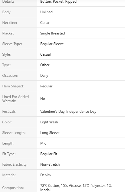 | COLOR | LIGHT WASH |