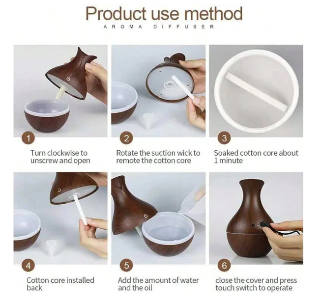USB-powered and portable, it’s perfect for bedrooms, offices, and large rooms. The durable plastic housing ensures long-lasting use, while its clean, simple design blends effortlessly into modern spaces. Add your favorite essential oils and enjoy a balanced blend of aromatherapy, moisture, and mood lighting.