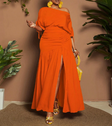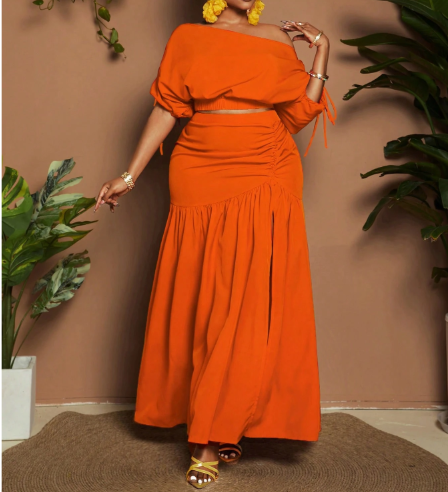 Make a bold statement with our Asymmetric Neck Top and Side Slit Skirt 2-Piece Set — where contemporary edge meets effortless elegance. The asymmetrical neckline adds a touch of intrigue, while the high side slit brings just the right amount of drama. Whether you’re headed to a dinner date, a rooftop soirée, or a night out with friends, this set is designed to turn heads. Pair with strappy heels and minimalist jewelry to let the silhouette do all the talking.