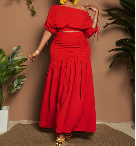 Make a bold statement with our Asymmetric Neck Top and Side Slit Skirt 2-Piece Set — where contemporary edge meets effortless elegance. The asymmetrical neckline adds a touch of intrigue, while the high side slit brings just the right amount of drama. Whether you’re headed to a dinner date, a rooftop soirée, or a night out with friends, this set is designed to turn heads. Pair with strappy heels and minimalist jewelry to let the silhouette do all the talking.