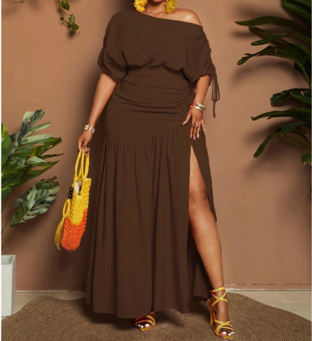Make a bold statement with our Asymmetric Neck Top and Side Slit Skirt 2-Piece Set — where contemporary edge meets effortless elegance. The asymmetrical neckline adds a touch of intrigue, while the high side slit brings just the right amount of drama. Whether you’re headed to a dinner date, a rooftop soirée, or a night out with friends, this set is designed to turn heads. Pair with strappy heels and minimalist jewelry to let the silhouette do all the talking.