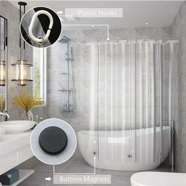 The transparent design with built-in magnets ensures the liner stays securely in place, preventing water from escaping and keeping your bathroom floor dry. Lightweight and easy to hang, it works perfectly with your existing shower curtain for a practical, polished look.