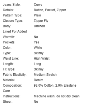 SIZE | 0XL, 1XL, 2XL, 3XL, 4XL |