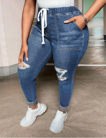 Where comfort meets street edge — these drawstring waist slim fit distressed jeans bring a laid-back twist to a classic denim silhouette. Featuring a functional drawstring for an adjustable fit and subtle distressing for that worn-in, effortless vibe, they’re built for both movement and style. The slim cut keeps the look clean and modern, while the casual waist detail adds just the right amount of athleisure appeal. Pair with a hoodie or oversized tee and sneakers for a look that’s relaxed, on-trend, and ready for whatever the day throws your way.