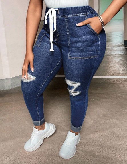 Where comfort meets street edge — these drawstring waist slim fit distressed jeans bring a laid-back twist to a classic denim silhouette. Featuring a functional drawstring for an adjustable fit and subtle distressing for that worn-in, effortless vibe, they’re built for both movement and style. The slim cut keeps the look clean and modern, while the casual waist detail adds just the right amount of athleisure appeal. Pair with a hoodie or oversized tee and sneakers for a look that’s relaxed, on-trend, and ready for whatever the day throws your way.