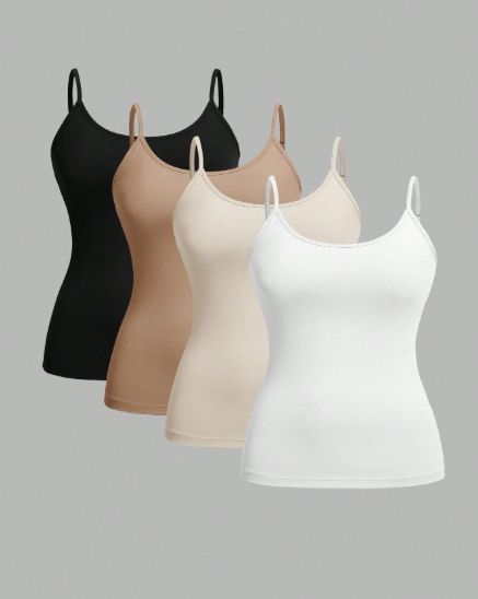 Everyday essentials made to flatter — our 4-Piece Plus Size Plain Casual Camisole Set is designed for comfort, versatility, and easy layering. Featuring soft, breathable fabric and adjustable spaghetti straps, these tank tops offer a smooth, flattering fit you’ll love wearing all day.