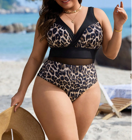 Make a bold statement by the water with this leopard print one-piece, designed with daring mesh patchwork for a touch of sultry allure. The wild print and sleek cut create a confident, fashion-forward look, while the one-piece silhouette balances sexy with sophistication. Perfect for poolside lounging or beachside cocktails, this swimsuit is made for those who love to stand out.