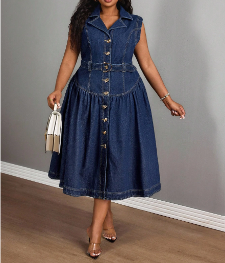 Sleek, flattering, and effortlessly modern, this sleeveless denim dress is designed to enhance your curves with ease. The structured collared neckline adds a polished touch, while the ruched skirt creates a body-contouring effect that highlights your silhouette beautifully. Crafted in classic denim, this dress transitions seamlessly from daytime chic to after-hours glam.