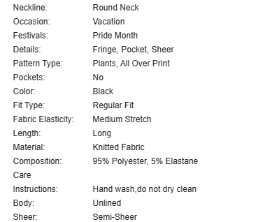 SIZE | 0XL, 1XL, 2XL, 3XL, 4XL |