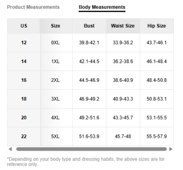 SIZE | 0XL, 1XL, 2XL, 3XL, 4XL, 5XL |
