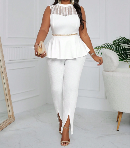 Turn heads in timeless elegance with this White Lace Patchwork Sleeveless Top, designed for the woman who loves grace with a touch of flair. The waist-cinching fit beautifully defines your silhouette, while the frilled hem adds soft, romantic movement. Delicate lace details bring a refined, feminine charm—perfect for brunch dates, special dinners, or stylish evenings out.