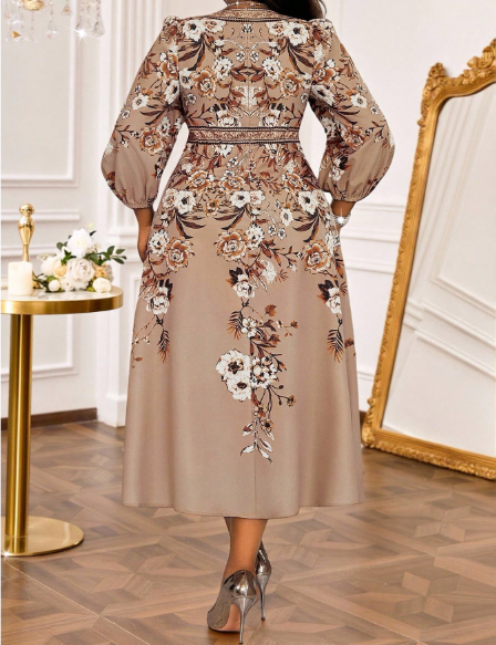A breathtaking blend of romance and elegance, this long evening dress features a soft floral print that adds effortless charm to your look. The heart-shaped collar highlights the neckline with a feminine touch, while the dramatic lantern sleeves create graceful movement and standout style. Designed with a flowing silhouette that flatters every curve, this dress is perfect for weddings, galas, date nights, and special celebrations. Timeless, sophisticated, and unforgettable — this piece is made to turn heads.
