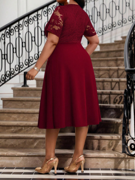 The Lace Patchwork Midi Dress is a sophisticated blend of romance and refinement. Its delicate lace detailing adds a touch of femininity, while the midi length creates a graceful, elongating silhouette. Designed to move seamlessly from daytime elegance to evening allure, this piece is as versatile as it is timeless.