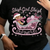 Sweet, playful and perfectly festive — this graphic tee brings holiday cheer with a fun twist. The black crewneck base gives it that cool, casual vibe, while the pink gingerbread sleigh and whimsical stars add a girly, creative pop that’s truly one-of-a-kind. Soft, comfy and easy to style, this tee is your go-to for relaxed Christmas outings, holiday movie nights, or a cute seasonal errand look.