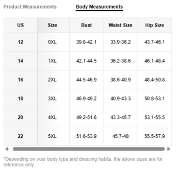 OXL, 1XL, 2XL, 3XL, 4XL, 5XL