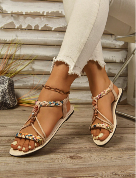 Step into effortless charm with these Wide Width Flat Sandals, designed in a fashionable Bohemian retro style. ✨ Their wide-fit design ensures maximum comfort and ease, while the luxurious detailing brings a touch of elegance to everyday wear. Perfect for beach strolls, casual outings, or pairing with flowy dresses, these sandals are the perfect balance of boho-chic and comfort-first fashion.