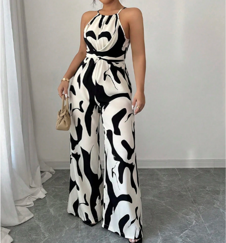 Make a statement with this eye-catching printed halter jumpsuit, designed to flatter with its waist-cinched silhouette and fluid drape. The halter neckline brings a touch of elegance, while the vibrant print adds playful personality. Ideal for sunny outings, garden parties, or vacation dinners—just pair with strappy sandals and bold earrings for a look that’s effortlessly put-together.