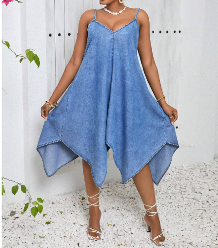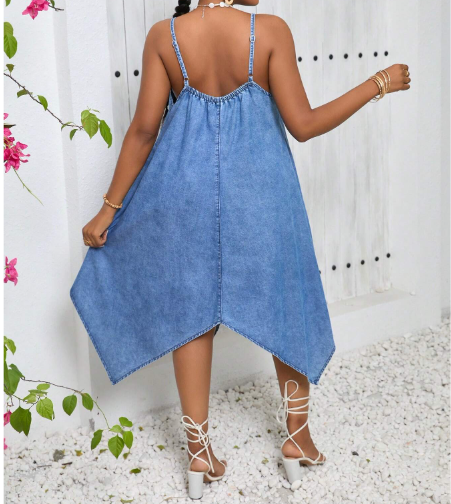 Reimagine your denim days with this Asymmetrical Hem Blue Denim Dress — a modern twist on a timeless classic. Crafted from soft yet structured denim, this piece features an offbeat hemline that adds movement and edge to your look. Whether you’re styling it with sneakers for daytime ease or dressing it up with boots and bold accessories, this dress is your new go-to for effortless cool. A staple with a statement — because denim should never be boring.