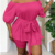 Turn up the charm with this playful yet chic two-piece set. Featuring a flirty off-shoulder crop top with voluminous puff sleeves, a front tie detail, and a stretchy knit fit, it blends feminine flair with all-day comfort. The matching drawstring shorts complete the look with a relaxed vibe that’s perfect for summer days or vacation nights.
