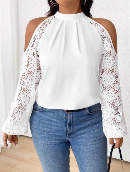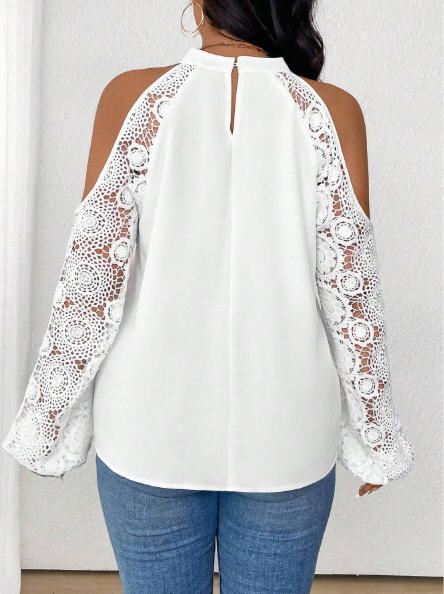 Elevate your elegance with this timeless Water-Soluble Lace Trim Solid White Blouse, designed for the woman who loves a touch of luxury in her everyday style. Crafted with delicate water-soluble lace details, this blouse blends classic femininity with modern sophistication.