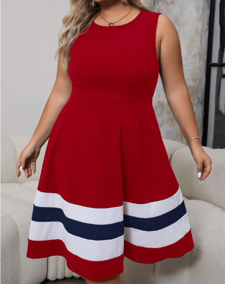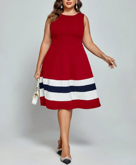 Chic, breezy, and confidence-boosting — this Sleeveless Striped Printed Plus Size A-Line Dress is your go-to for effortless everyday elegance. The classic A-line silhouette flatters every curve while offering comfort and movement, and the vertical stripes create a lengthening effect for a beautifully balanced look. Perfect for casual outings, brunch dates, or summer strolls, this dress pairs easily with flats or wedges. Add a light cardigan or denim jacket for a polished, versatile style that transitions seamlessly from day to night. 🌞👗