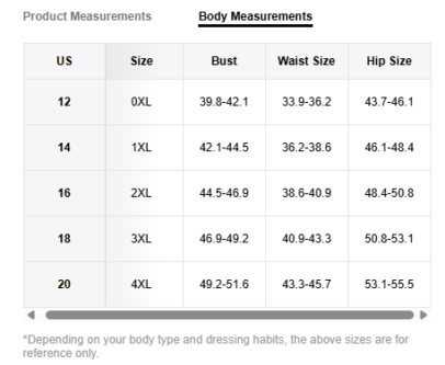 SIZE | 0XL, 1XL, 2XL, 3XL, 4XL |