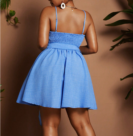Simple yet effortlessly chic, this solid-color spaghetti strap dress is a versatile staple for warm-weather days. Its lightweight design and flattering short length make it perfect for casual outings, brunch dates, or beachside strolls. Dress it up with heels and statement jewelry, or keep it laid-back with sandals and a sun hat for an easy, breezy look.