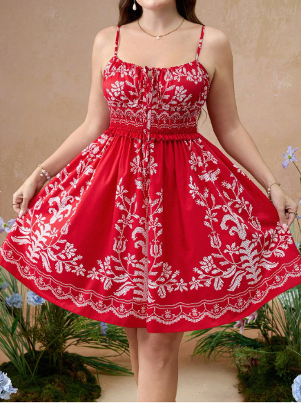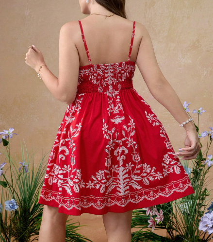 Feminine and flirty, this spaghetti strap floral mini dress features a flattering A-line silhouette with a delicate tie-up detail that accentuates the waist. Designed for effortless charm, it flows beautifully with every step, making it perfect for brunch dates, vacation strolls, or casual evenings out. Lightweight and breathable, this dress blends comfort with standout style for warm-weather days.