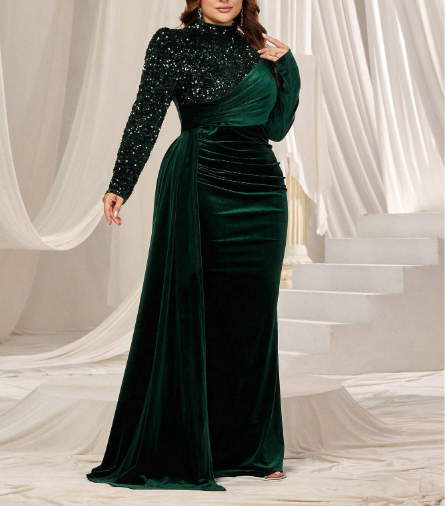 This Mock Neck Velvet Elegant Dress is the epitome of refined sophistication. Crafted from luxurious velvet, it offers a soft, rich texture that exudes timeless elegance. The mock neck design adds a touch of modern refinement, while the tailored silhouette flatters the figure gracefully. Perfect for formal dinners, evening events, or upscale gatherings, this dress combines classic charm with understated glamour.