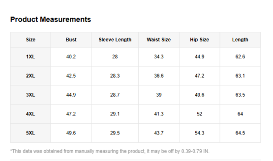 SIZE | 1XL, 2XL, 3XL, 4XL, 5XL |