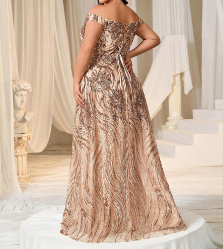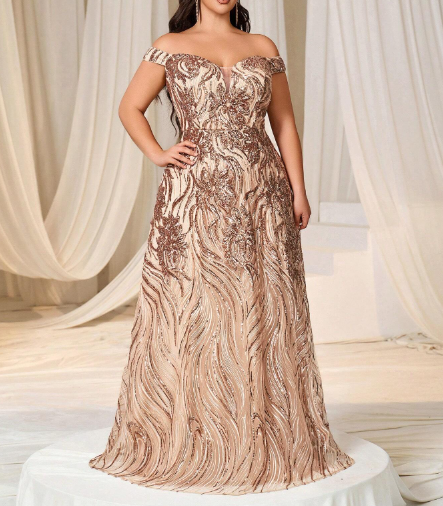 This Off-Shoulder Sweetheart Neck Sequin Prom Dress is designed to dazzle at any special occasion. The off-shoulder silhouette paired with a sweetheart neckline highlights the collarbone and adds a romantic, feminine touch, while the all-over sequins bring sparkling glamour. Perfectly tailored for prom, evening events, or formal parties, this dress combines elegance with a show-stopping, red-carpet-ready shine.