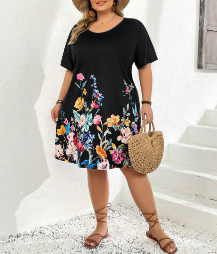 This dress blends effortless charm with everyday wearability. The all-over print adds personality without overwhelming, while the minimalist cut keeps it versatile and timeless. Pair it with white sneakers for a laid-back daytime look, or dress it up with strappy sandals and delicate jewelry for an easy evening transition. Lightweight and flattering, it’s your go-to piece for chic comfort all season long.